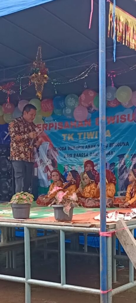 Pada saat menyampaikan kata sambutan Kepala desa Bapak jarnedi menyampaikan ungkapan rasa syukur dan sekaligus memberi arahan kepada anak-anak TK tiwita supaya bisa lebih gigih dan harus giat mencari ilmu untuk bekal dimasa depan, dan juga beliau menyampaikan kepada wali murid agar terus membimbing anak-anak agar bisa menjadi generasi penerus yang dapat membanggakan orang tua dan ibu guru pendidikan, sembari menyerahkan piagam kepada anak TK tiwita yg telah wisuda, tak hanya sampai di situ