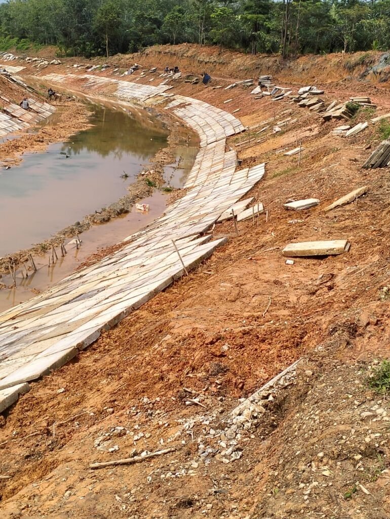 Pemandangan lainnya di lokasi yakni pengerjaan pemasangan lining tersebut meninggalkan jejak yang cukup meresahkan bagi masyarakat pengguna jalan inspeksi. Pasalnya, jalan inspeksi menjadi rusak akibat aktivitas lalu lalang mobil pengangkut lining.