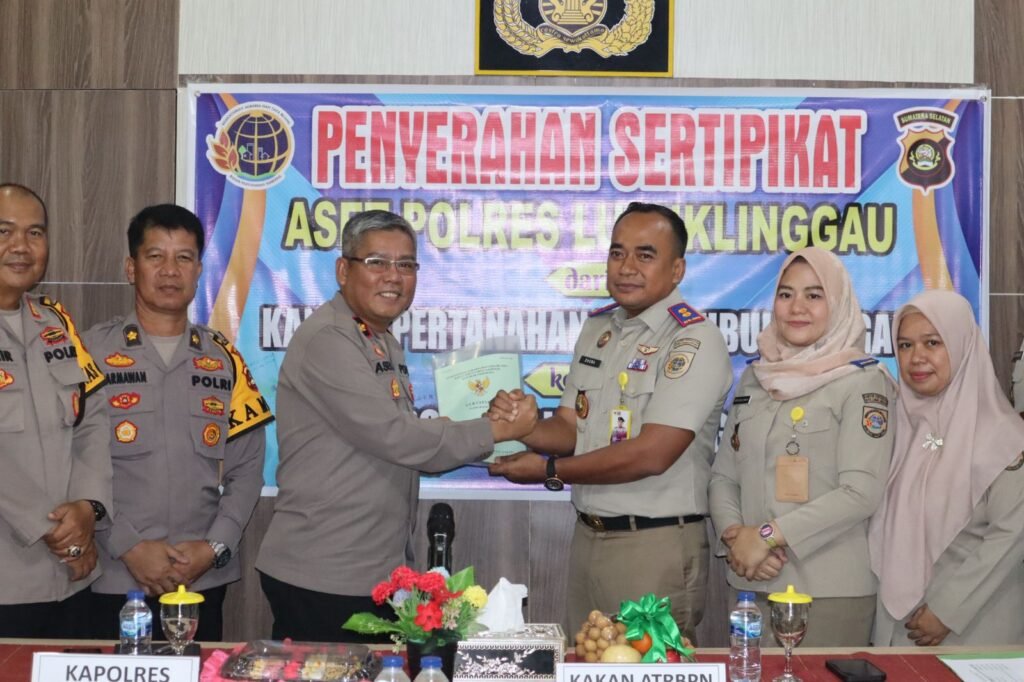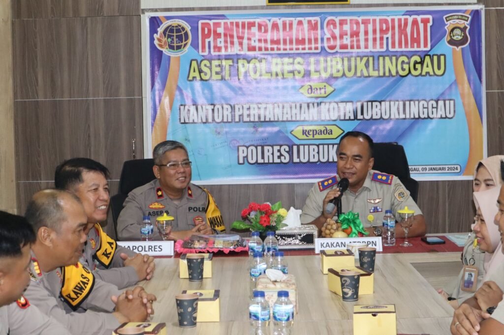 Lubuklinggau, mitrakeadilan.com – Dalam upaya meningkatkan legalitas dan kepastian kepemilikan aset, Kepala Badan Pertanahan Nasional (BPN) Kota Lubuk Linggau, Dhona Fiermanayah Lubis, beserta rombongannya, turut hadir dalam acara penyerahan sertifikat tanah aset Polres Lubuk Linggau yang berlangsung di Mapolres Lubuk Linggau pada Selasa, (9/1/24).