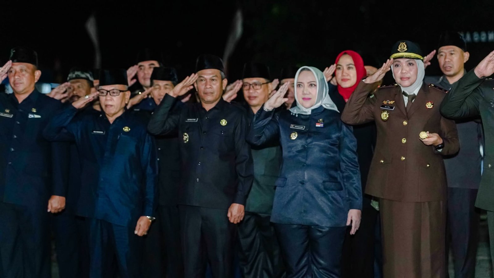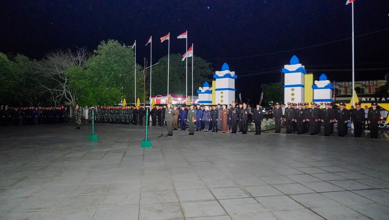 Selama upacara berlangsung, Bupati dan Wakil Bupati, bersama seluruh peserta, berdiri tegak. Dengan penerangan obor yang temaram, mereka mendengarkan pembacaan naskah renungan suci yang dipimpin oleh inspektur upacara. Setiap kata yang terucap menjadi pengingat akan pengorbanan yang tak ternilai harganya.
