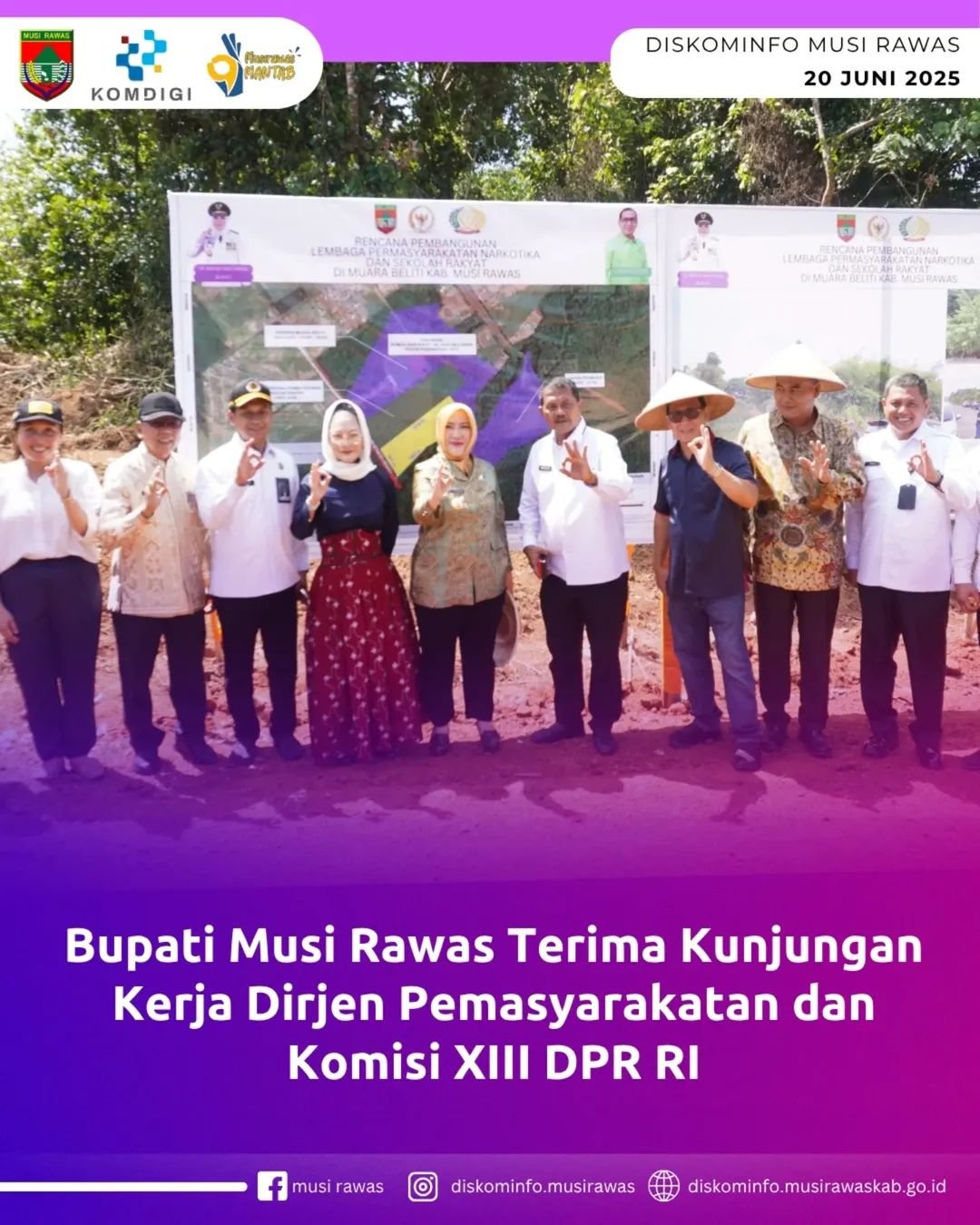 Mura,-mitrakeadilan.com. Bupati Musi Rawas Hj Ratna Machmud menerima Kunjungan Kerja Dirjen Pemasyarakatan Brigjen Pol Drs Mashudi dan anggota Komisi XIII DPR RI Ke Lapas Narkoba Kelas IIA Muara Beliti serta meninjau secara Langsung Lokasi Baru Lapas Narkoba Kelas IIA Muara Beliti, Jum’at (20/06/2025).