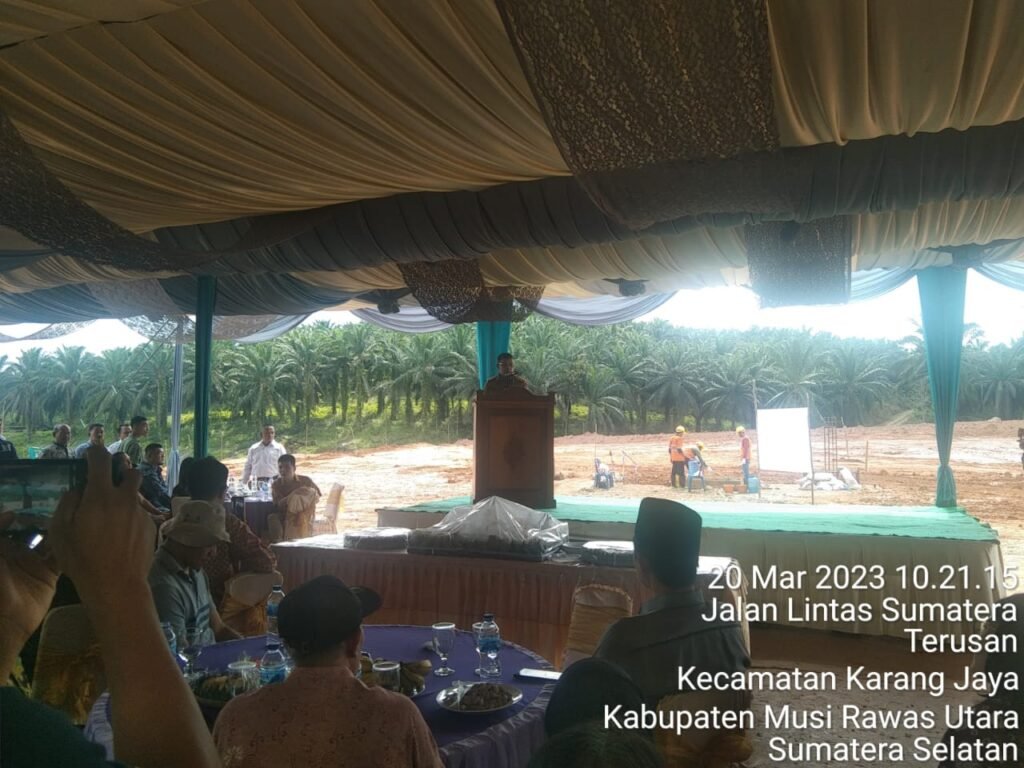 Peletakan batu pertama PT. Mitra Sejahterah Musirawas Utara di Desa Terusan Kecamatan Karang Jaya Kabupaten Musi Rawas Utara Sumatera Selatan sebagai simbol telah berdirinya Perusahaan yang bergerak dibidang industri sawit yang akan menopang dan membantu perekonomian masyarakat, Senin (20/03/20223).