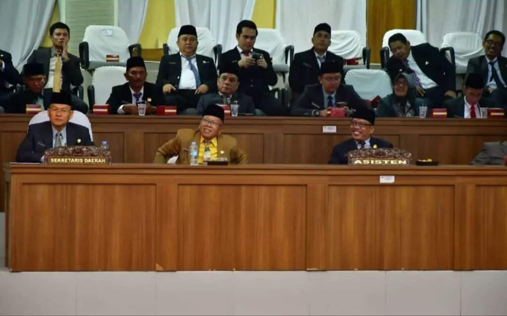 Mitrakeadilan.com – Bupati Musi Rawas Hj. Ratna Machmud dan Wakil Bupati Musi Rawas Hj. Suwarti bersama para Pimpinan dan Anggota DPRD Kabupaten Musi Rawas dalam rapat paripurna yang dipimpin oleh Wakil Ketua II DPRD Hendra Adi Kusuma, Rabu (16/8/2023) mendengarkan pidato kenegaraan Presiden Republik Indonesia dalam rangka memperingati HUT RI Ke-78 Tahun 2023.