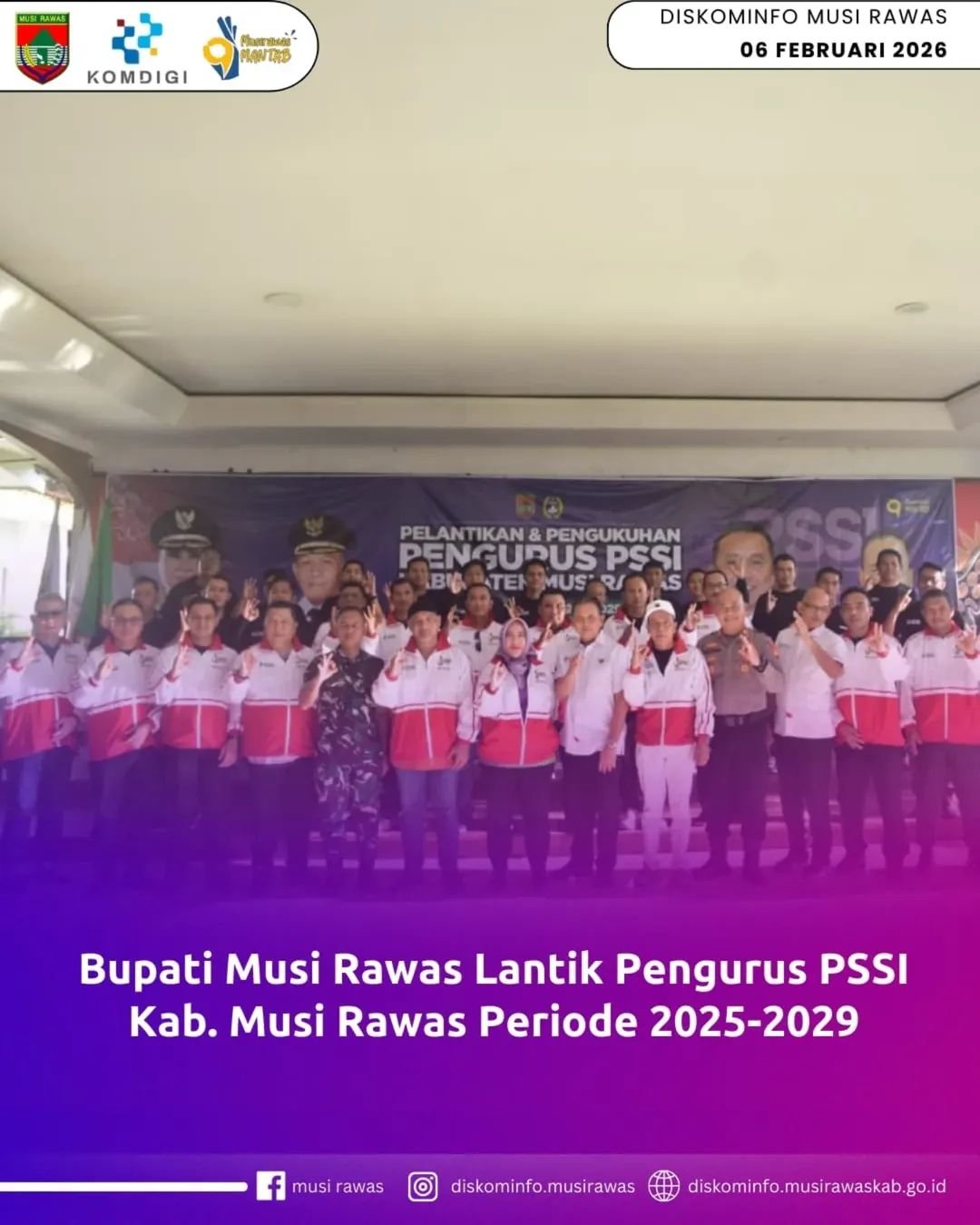 Musi Rawas,- MK.Com. Bupati Musi Rawas Hj. Ratna Machmud Lantik Pengurus PSSI Kabupaten Musi Rawas Periode 2025-2029 di Pendopoan Rumah Dinas Bupati Musi Rawas, Jumat (06/02/2025).
