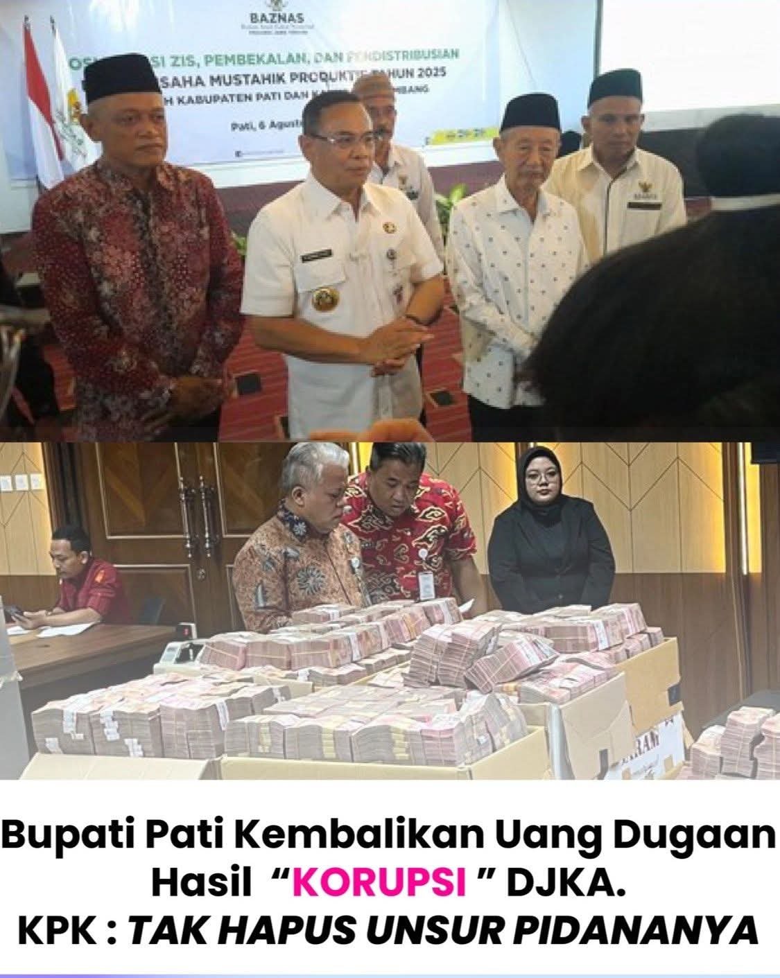 Komisi Pemberantasan Korupsi (KPK) membenarkan Bupati Pati Sudewo telah mengembalikan uang yang diterimanya terkait kasus suap proyek pembangunan dan pemeliharaan jalur kereta di Direktorat Jenderal Kereta Api (DJKA) Kementerian Perhubungan (Kemenhub). Meski demikian, KPK menegaskan hal tersebut tidak menghapus unsur pidana yang telah dilakukan, sebagaimana merujuk pada Pasal 4 UU Tipikor.