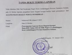 Lubuklinggau, mitrakeadilan.com – Kembali LSM Pemerhati Pembagunan Daerah (P2D) yang di ketuai oleh Mulyadi dan Aliansi Masyarakat Peduli Pendidikan melaporkan atas dugaan korupsi dana Bantuan Operasional Sekolah (BOS) tahun 2024 di SMK Negeri 3 Lubuklinggau Provinsi Sumatera selatan, Selasa (14/01/2025).