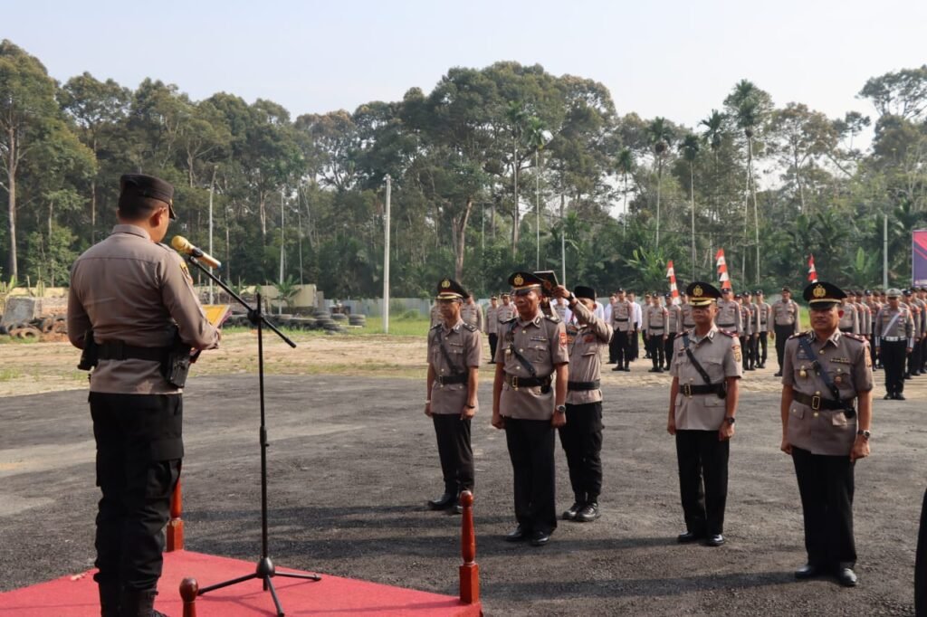 MURATARA-Kapolres Musi Rawas Utara (Muratara) AKBP Koko Arianto Wardani, SIK, MH, Kamis, 31 Agustus 2023, memimpin Upacara serah terima jabatan pada 5 (lima) Perwira di Lapangan Mapolres Muratara.