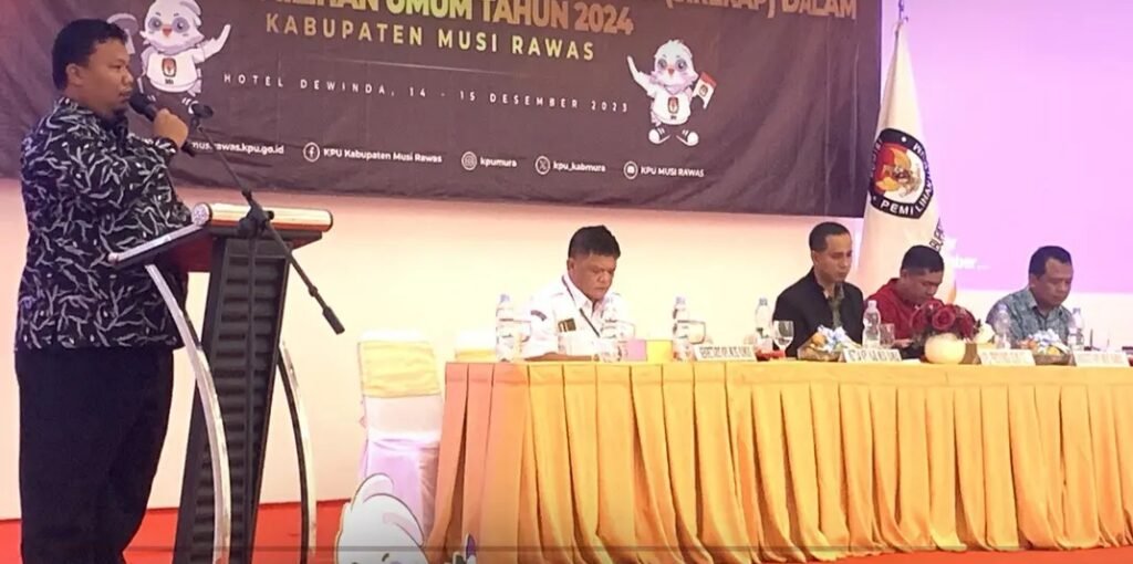 Lubuklinggau, mitrakeadilan.com – Komisi pemilihan Umum (KPU) Kabupaten Musi Rawas ( Mura) mengadakan pelaksanaan Bimbingan Teknis (Bimtek) rekapitulasi hasil penghitungan suara dan sistem informasi Rekapitulasi (Sirekap) dalam Pemilihan Umum Tahun 2024.Dimana Kegiatan bimbingan Teknis tersebut berlangsung di Aula lantai Lima Hotel Dewinda kota Lubuklinggau provinsi Sumatra Selatan (Sumsel).