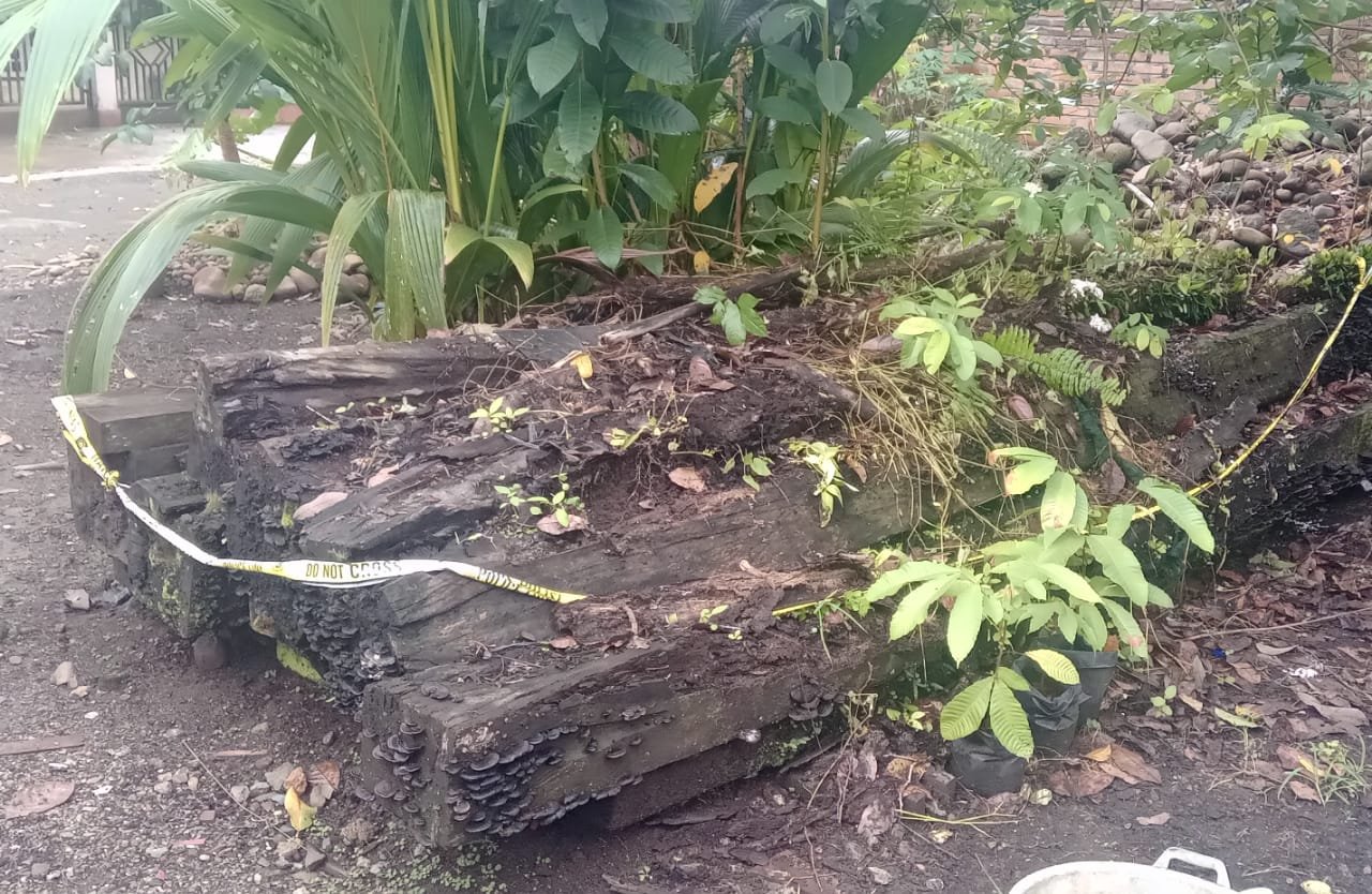 Berdasarkan pantauan di lokasi terlihat tumpukan balok kayu yang sudah lapuk lantaran telah diamankan oleh pihak kepolisian dari lokasi penebangan sejak 2020 ,sedangkan garis polisi (police line) masih terlihat utuh walaupun sudah berada di atas kayu selama 3 tahun belakangan.