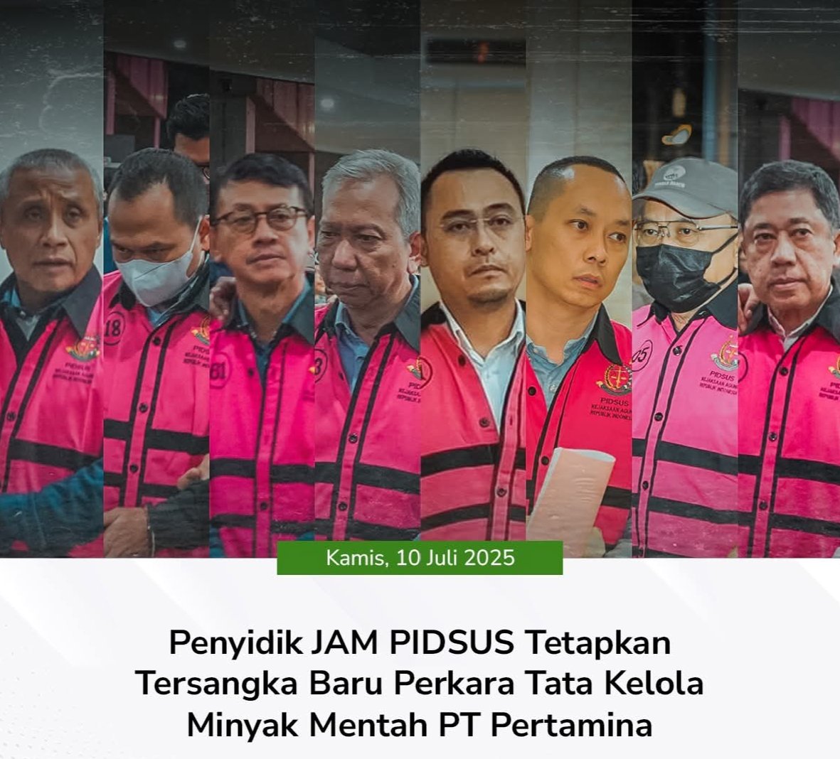 Tim Penyidik Jaksa Agung Muda Bidang Tindak Pidana Khusus (JAM PIDSUS) hari ini mengguncang publik dengan menetapkan sembilan orang sebagai tersangka dalam kasus dugaan tindak pidana korupsi tata kelola minyak mentah dan produk kilang PT Pertamina (Persero), Sub Holding, dan Kontraktor Kontrak Kerja Sama (KKKS) periode 2018 hingga 2023 pada Kamis,(10/7/2025 . Kasus korupsi yang merugikan negara fantastis, mencapai Rp285.017.731.964.389 (dua ratus delapan puluh lima triliun tujuh belas miliar tujuh ratus tiga puluh satu juta sembilan ratus enam puluh empat ribu tiga ratus delapan puluh sembilan rupiah) ini menjadi sorotan utama.
