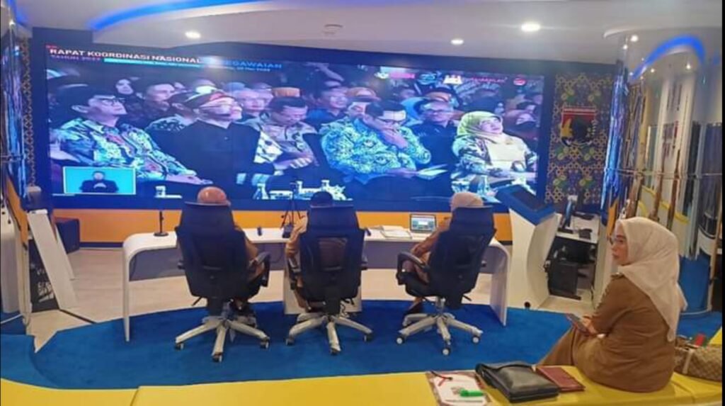 Mitrakeadilan.com – Sekretaris Daerah (Sekda) Kota Lubuklinggau, H Trisko Defriyansa didampingi Asisten III Bidang Administrasi Umum, Herdawan menghadiri rapat koordinasi nasional (Rakornas) kepegawaian BKN tahun 2023 via zoom meeting bertempat di Command Center (CC) Perkantoran Wali Kota Lubuklinggau.