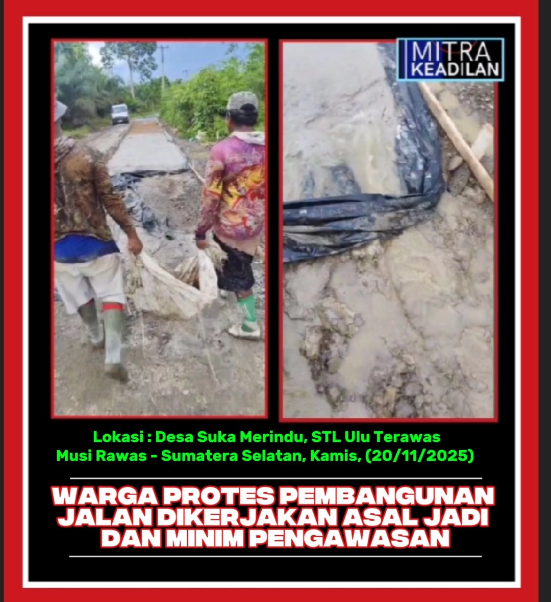 Masyarakat Suka Merindu mendesak Pemerintah Kabupaten Musi Rawas, khususnya pihak PU, untuk segera mengambil tindakan tegas terhadap pelaksana proyek yang diduga merugikan negara dan masyarakat ini.