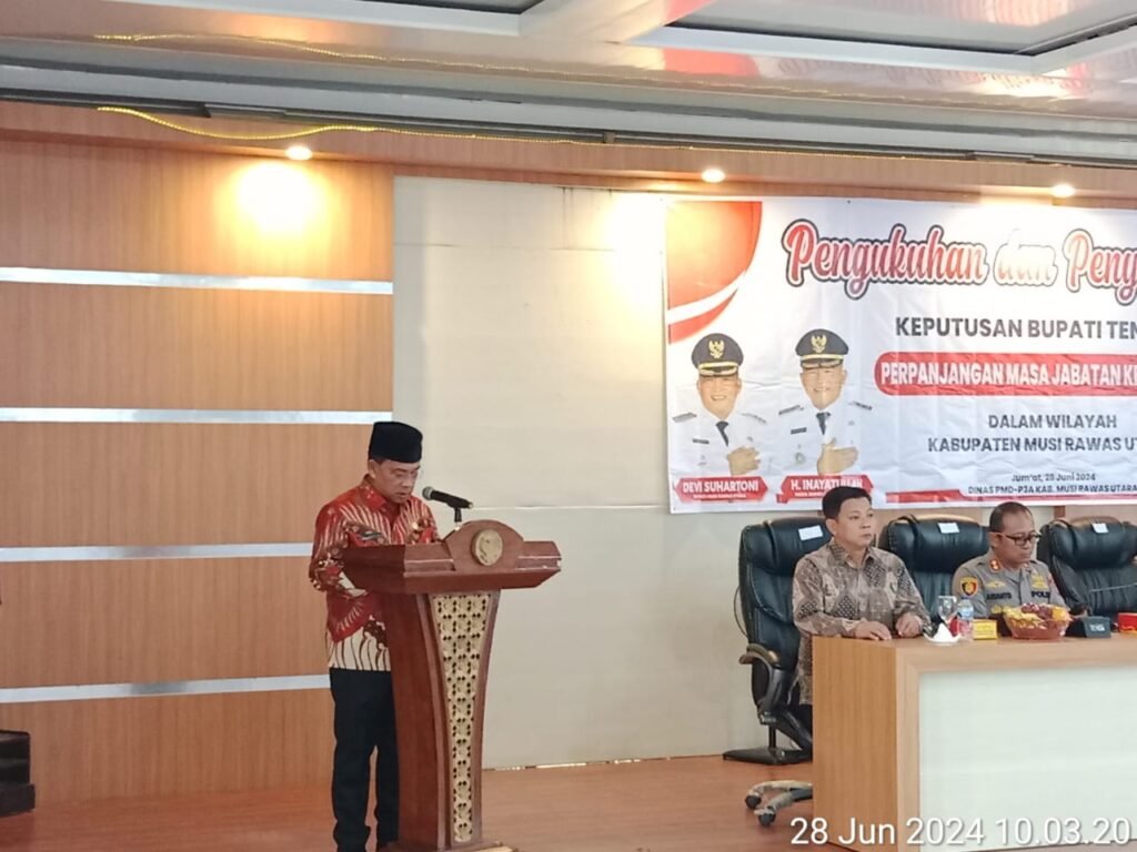 Penandatanganan dan langsung pengukuhan oleh Bupati H Devi Suhartoni. Maka Masa jabatan Kepala Desa, adanya penambahan masa jabatan 2 tahun Menjadi 8 Tahun, terhitung sejak tanggal pelantikan.