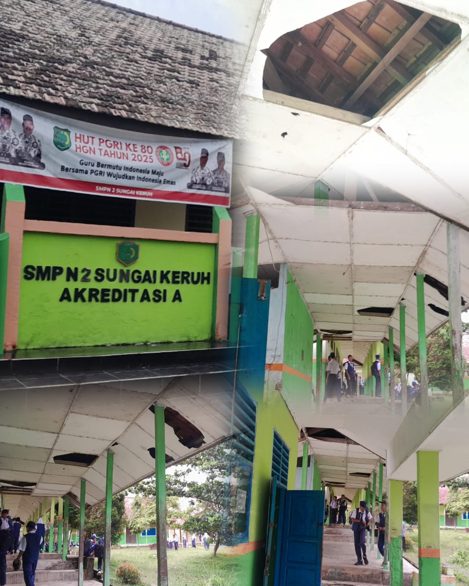 Plafon yang rusak bukan hanya persoalan estetika, tetapi ancaman nyata bagi keselamatan peserta didik dan tenaga pendidik. Sekolah seolah dibiarkan “bernapas lewat lubang plafon”.