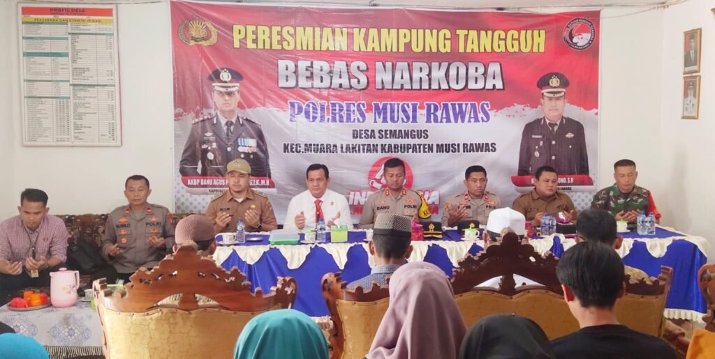 mitrakeadilan.com – Kapolres Mura, AKBP Danu Agus Purnomo SIK, MH didampingi Kasat Narkoba, AKP Herman Junaidi SH dan Kapolsek Muara Lakitan, Iptu M Karim, meresmikan Kampung Tangguh Bebas Narkoba (KTBN).