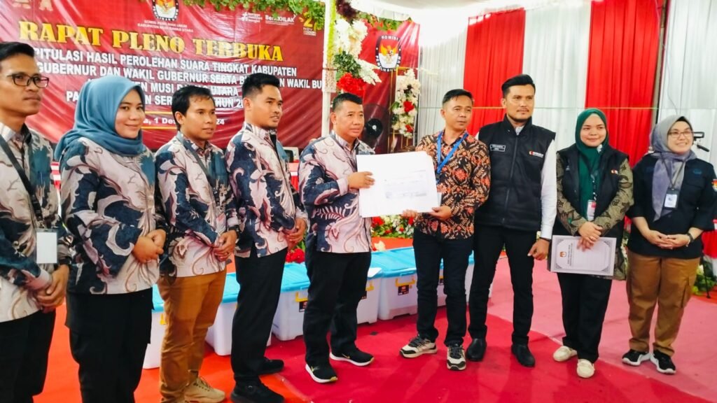MURATARA, mitrakeadilan.com – Bertempat di Sekretariat KPU Musirawas Utara, Komisi Pemilihan Umum (KPU) Kabupaten Musi Rawas Utara (Muratara) menggelar Rapat Pleno Terbuka Rekapitulasi Hasil Perhitungan Perolehan Suara Pemilihan Gubernur dan Wakil Gubernur Serta Bupati dan Wakil Bupati Kabupaten Muratara Sumatera Selatan Tahun 2024, Minggu (1/12/2024).