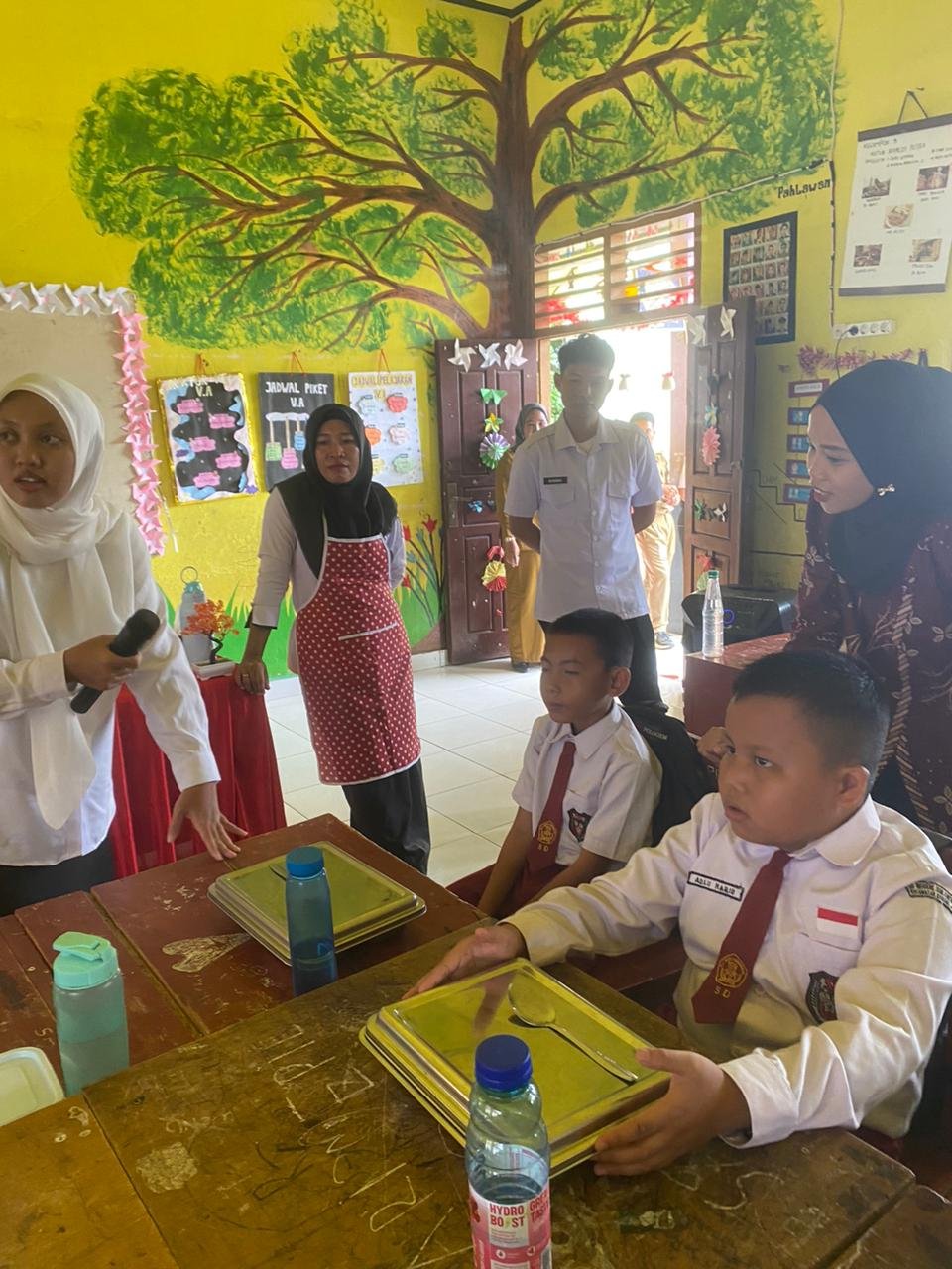 Dalam kesempatan tersebut team SPPG dan anggota bertemu langsung dengan siswa di kelas ingin menyaksikan langsung siswa-siswi makan gratis bersama dan juga dilakukan diskusi ringan dengan serta diakhiri dengan yel-yel makan bergizi gratis dikalangan siswa.